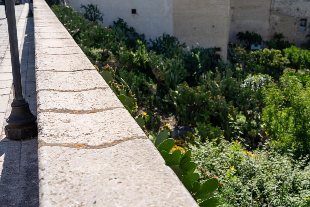 Il ponte si apre su una veduta paesaggistica incantevole, dove la natura racconta l’anima della Sicilia: il fico d’India, il mandorlo, il canneto e, inaspettatamente, il papiro, che cresce rigoglioso lungo le sponde di un piccolo corso d’acqua, visibile soprattutto nei periodi di pioggia.