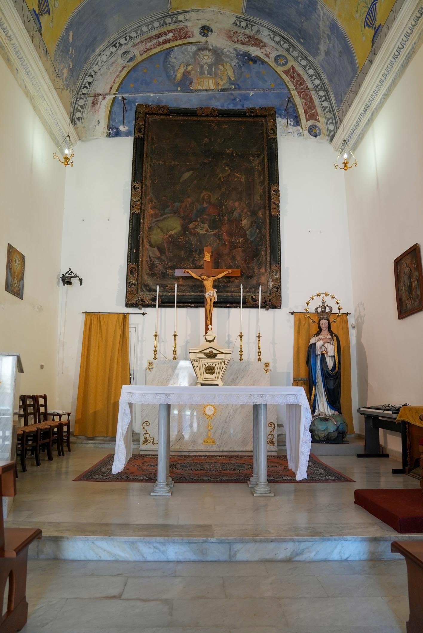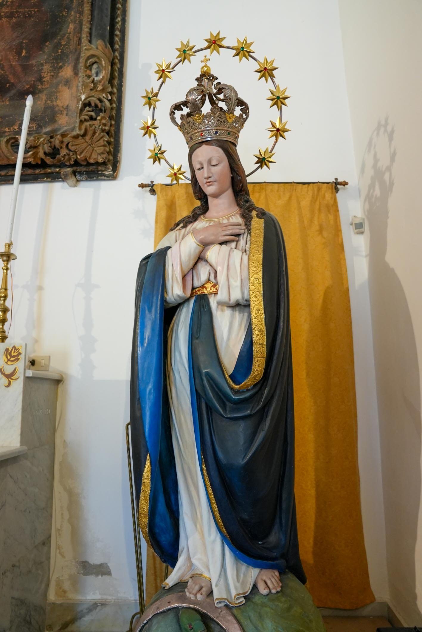 Sul lato opposto della chiesa, si trova invece l’Oratorio del Santissimo Rosario, un tempo luogo di culto legato all’omonima confraternita, profondamente devota alla Madonna del Rosario.
