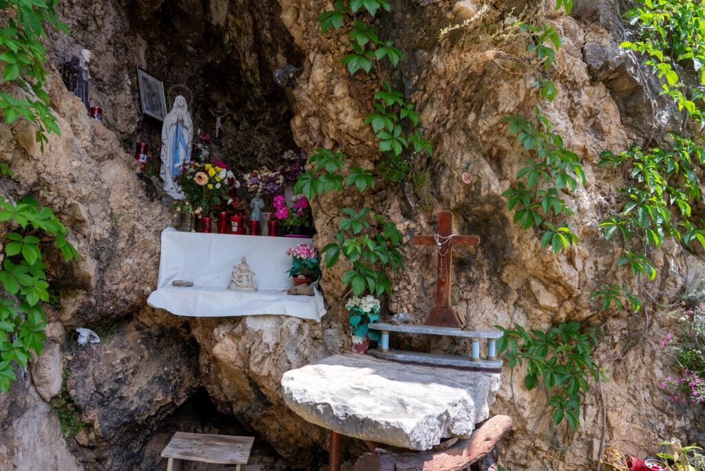 Incassato nella roccia e immerso nella natura rigogliosa delle pendici di Ventimiglia di Sicilia, il Santuario della Madonna di Lourdes è un luogo di profonda devozione e raccoglimento spirituale. Situato poco distante dall’Eremo di San Felice, questo piccolo santuario rupestre colpisce per la sua semplicità e la sua autenticità.